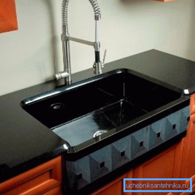 In any case, the kitchen sink of granite, marble or onyx will look much more impressive than stainless steel, moreover, it has a fairly high level of noise absorption compared to any of the metals.