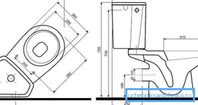 In toilet rooms of small sizes a mini-toilet can be used, the dimensions of such a sanitary appliance are: in length - 460-590 mm; in height - 260-335 mm, well, the width is equal to 290-350 mm.