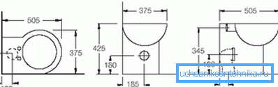 It happens that the geometry of the room requires angular placement of sanitary equipment. In this case, the dimensions of the sanitary device are determined by the dimensions of the corner itself. In general, the dimensions of such models are approximately in this range: length - 725-790 mm, height - 740-815 mm, width - 345-375 mm.