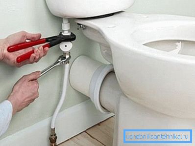 - with the help of a tap on the water pipe, the flow of the liquid to the storage tank of the toilet bowl is blocked;