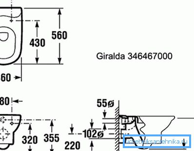 The size of the suspended toilet and the installation to it varies depending on the manufacturer and model within fairly wide limits.