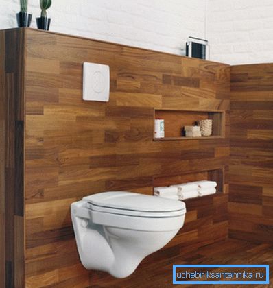 The visual space will be associated with the peculiarities of human perception of the size of the room. They are unconsciously evaluated on the area of two planes - the floor and the ceiling. Since the floor in our case is not cluttered, the toilet, despite the actual reduction in floor space, will seem somewhat less cramped.