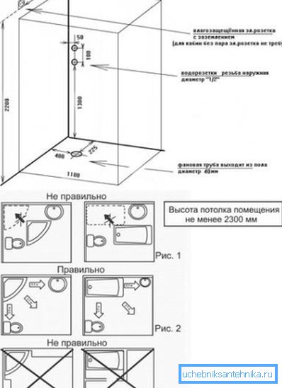 - Considering the numerous options for individual cabins, or pallets with a folding screen, it should be noted that it is square or rectangular shape that best corresponds to the bathroom floor plan.