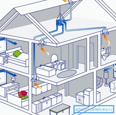| Forced ventilation | This option is more advanced, since the movement of air is provided by a fan or the whole injection system. Of the advantages we can highlight the possibility of adjusting the air exchange, the presence of filters, temperature and humidity control in the rooms. The disadvantages are the considerable cost and complexity of the project with their own hands |