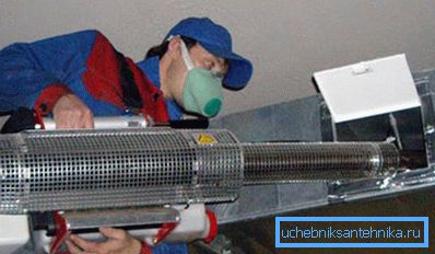 After both devices are turned on, the removal of grease and dust from the walls of the ventilation duct will begin. At the same time, the removal of slags and dirt, which fall on a special replacement filter apparatus. Its price is relatively low, which means it’s not worth saving or using it twice, because in some cases they are subjected to laboratory analysis.