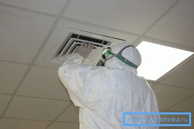 When the work is completed, the whole system is again merged into a single whole and begin to carry out ventilation in the most accessible mode. This prevents the presence of people in the room, as there is evaporation of the treatment solution may be present in the main line.
