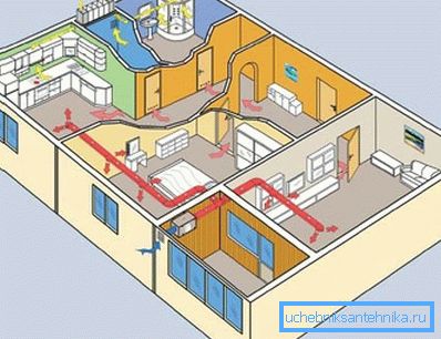 Tip: Usually oxygen supply is organized into the first (living room, bedroom, study), and exhaust air masses are drawn through the second (storeroom, bathroom, bathroom).