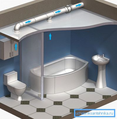 In a residential area air flows circulate due to the gap under the interior doors. The exhaust system must be concentrated near special rooms, as the values of the basic parameters of the air environment increase here, for example, in the bathroom and the kitchen.