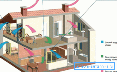 Each building has its own characteristics, therefore, the air circulation in them occurs with their obligatory account. For example, in addition to the vents provided for ventilation in windows and cracks under the door, the building material from which the building was erected is taken into account.