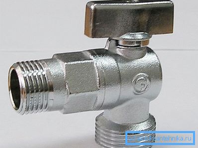 Externally, the valve looks like a corner fitting with a handle or lever. The latter may have a very different design, for example, the handle of the corner crane of the sample of the year 80 is made in the form of a plastic flywheel, but in modern devices the handle looks like a neat switch.