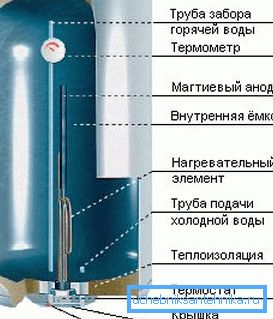 - TEN - the main element of a design which is responsible for water heating. It is located directly in the tank with water and its operation is controlled by an automatic control system.