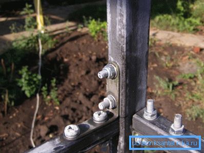 - after resolving the issue with the base, you can proceed to the construction of the frame itself. If a metal profile is used, both bolted and welded joints can be used. In the case of a wooden frame, the bars of the lower and upper trim are connected in half-wood;