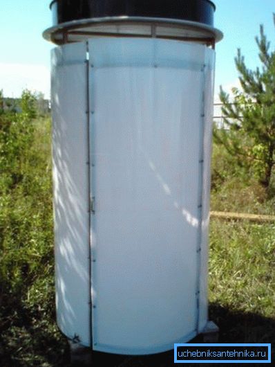 - Summer shower, in many respects called summer because the water in the tank is heated by solar energy. From here we conclude that the cabin should always be in the sun.