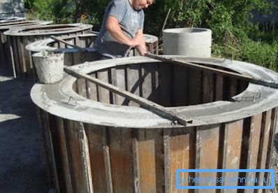 On your own site, you can make a lightweight version of the design, with the dimensions of the concrete rings for the well being: O 900 mm, height - 900 mm, wall thickness - 70 mm.