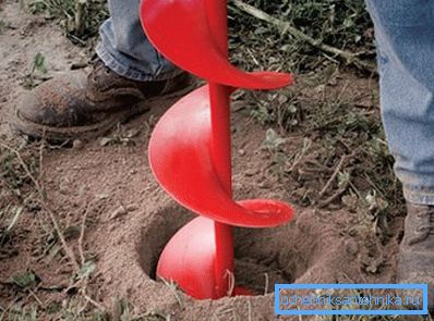 - The drill is lowered to the location of the future well and cranked around its axis. The drill is turned, holding the handle until full penetration into the ground.