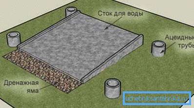 - To drain the water, it is easier to make a dimple, cover the layer of gravel and cover the canopy with boards, leaving a gap. You can arrange a pallet with gravity or forced (using a drainage pump) drain.