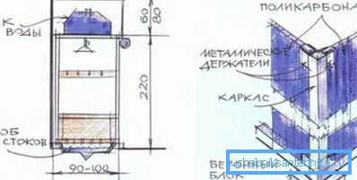 Note! If it is possible to use cellular polycarbonate, the question of how to sheathe a shower stall at a dacha can be considered resolved. Both colorless and colored sheets look great. Honeycombs keep warm well, inside it will be light, but it is impossible to consider a person who is in a booth.
