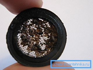 - The high-quality nozzles at the entrance is fixed metal mesh. It plays the role of a coarse filter, because it is necessary to periodically remove dirt from its surface. In addition, the presence of the filter significantly extends the life of the nozzle.
