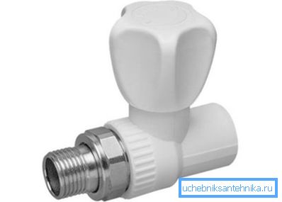 The body of these products is made of polypropylene, so that the installation of cranes is carried out in the same way as the connection of polypropylene pipes and other fittings. Among the features of the device can highlight the ability to pass and the lack of need for maintenance.