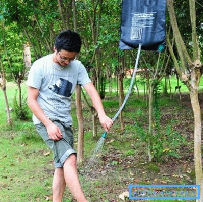 The problem of water supply is most often solved by installing a tank at the level of the roof of the booth so that the liquid enters the watering can under its own weight. Of course, it is better to build a well or dig a well, then water can be pumped into a hydroaccumulator tank and put into a shower under pressure, but not every summer resident has such an opportunity.