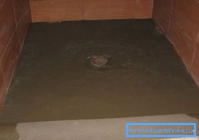 - If the design provides for this, then we install a pallet on the lined area of the floor, which we attach to the drain pipe.