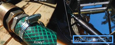 - Having lowered the pump on the necessary depth, it is necessary to tie a cable to a frame;