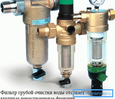 These are the first water pipe filters in a private house, which must be installed on a mandatory basis if you want to avoid sand and other insoluble substances getting into sensitive plumbing fixtures, cooking food, and drinking water taps.
