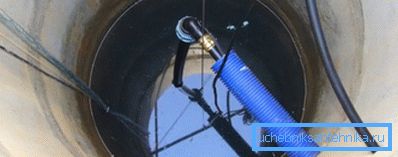 After that, it will be necessary to lower the pipe (or rigid hose) through the hole made into the well, on which you need to pre-fix the submersible pump and non-return valve. At its end, which falls into the source, a filter in the form of a grid (coarse cleaning) is necessarily installed.
