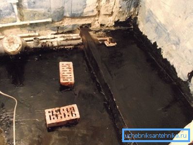- Once the surfaces are reinforced, they must be waterproofed.. For this we use bitumen mastic, which is applied with a thin layer with a brush.