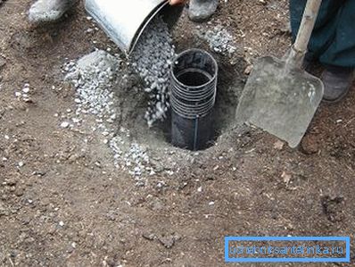 - Finally, the annulus is filled with concrete or cement mortar.. To do this, you need to install the oil seal above the well filter or pour a filtration zone and a half to two meters above the rubble, and then pour the solution into the canal with a shovel. During the work it is necessary to vibrate the pipe for dense laying of concrete.