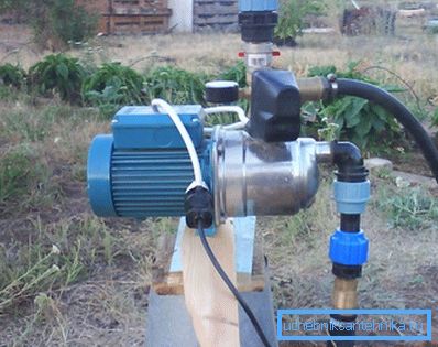 - If the distance to the water level in the well is up to 8 meters, it is possible to use self-priming surface pumps. Such pumps are afraid of moisture ingress, so they should be protected from precipitation under sheds and also insulated in the cold period of the year. The most convenient will be the location of the surface pump in a warm technical room of the house or caisson (pit) near the well.
