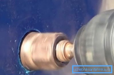 But to install the crane, in any case, we will need a hole, which is much easier to drill in plastic containers, and for this we need an electric drill or screwdriver, as well as a core mill (steel or with a diamond-coated) across the nozzle diameter.