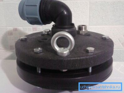 The use of this design provides the ease and convenience of mounting a submersible pump for the eye-bolts located on the cover. Lifting and lowering devices for the well can be carried out by means of lifting mechanisms such as a winch or a crane.