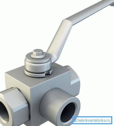 | Running gear | A fairly common option. It is installed on a straight section of the pipeline system. The main disadvantage is a zone of stagnant fluid. |