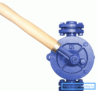The design of the hand pump for the well includes a cylinder and a piston, which has a piston valve. In the lower part of the cylinder there is a flat valve, which operates according to the vacuum principle.